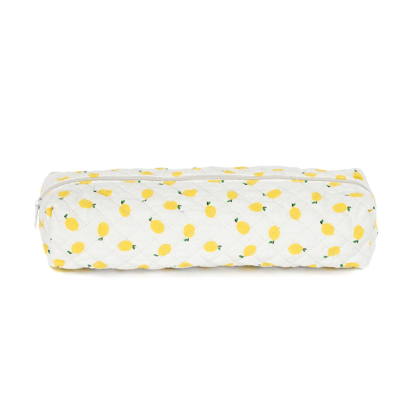 The quilted exterior features a beautiful lemon-themed pattern, complemented by a classy striped green interior.