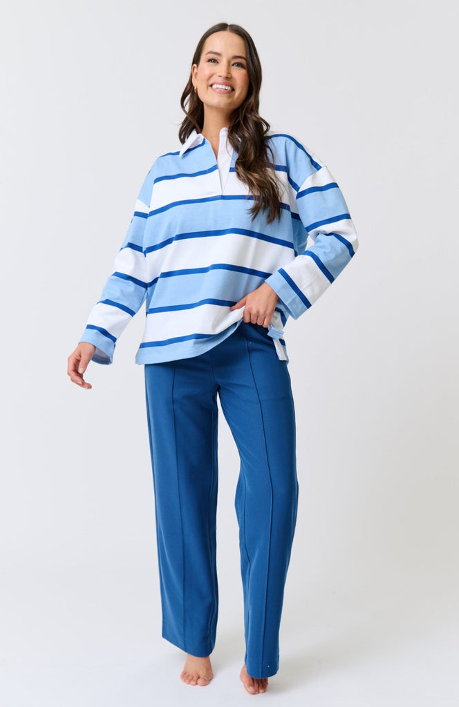 Cartel & Willow Ronnie Rugby Shirt - Sky Stripe