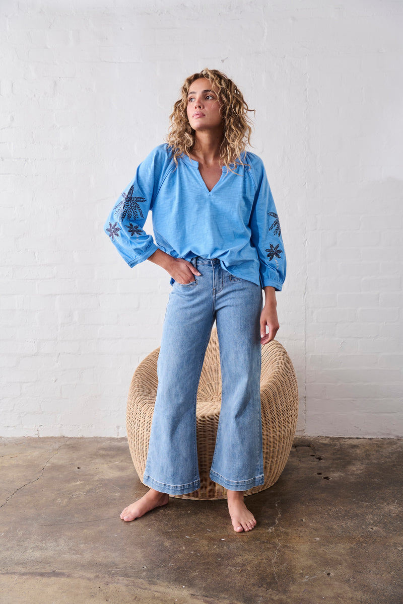 Channel chic 70’s style. A modern twist on the classic wide-legged jean, the Freya features a mid/high rise that’s fitted at the hips with a relaxed, wide leg that flares at the knee. Works so well with one of our breezy cotton shirts and a pair of boots or sandals.
