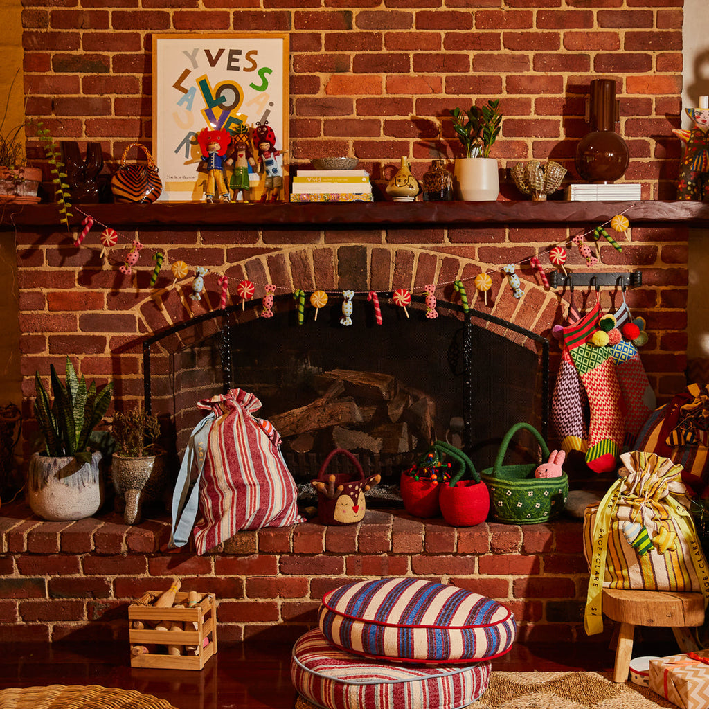 Add handmade cheer to your home with our felt bunting, carefully crafted by skilled artisans. Strung with playful felt shapes and embroidered accents, it brings soft, textural charm to mantels, doorways and walls, setting a festive mood in seconds.