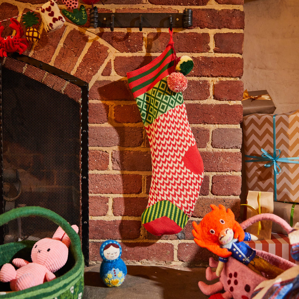 Add a burst of colourful cheer to your holiday decor with our knitted stocking. Soft and textural, it looks beautiful on display and is perfect for filling with all sorts of festive surprises.