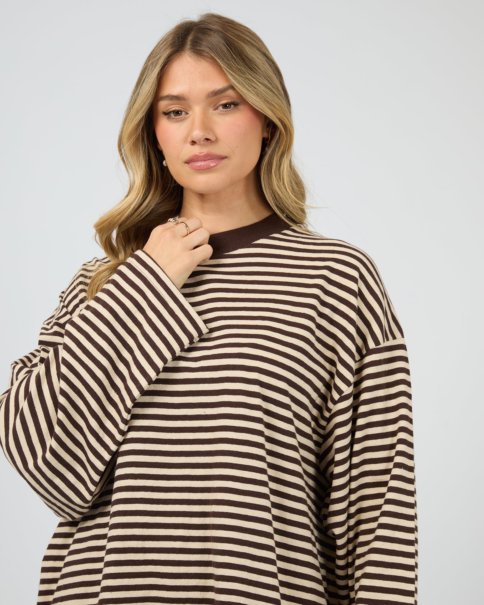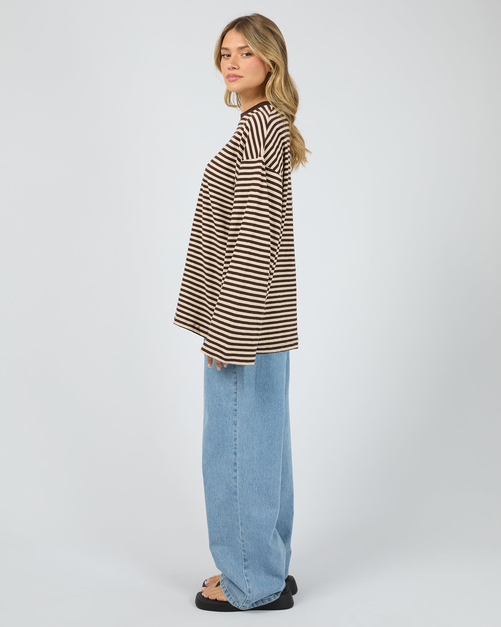 All About Eve Paloma Long Sleeve Stripe Tee - Brown