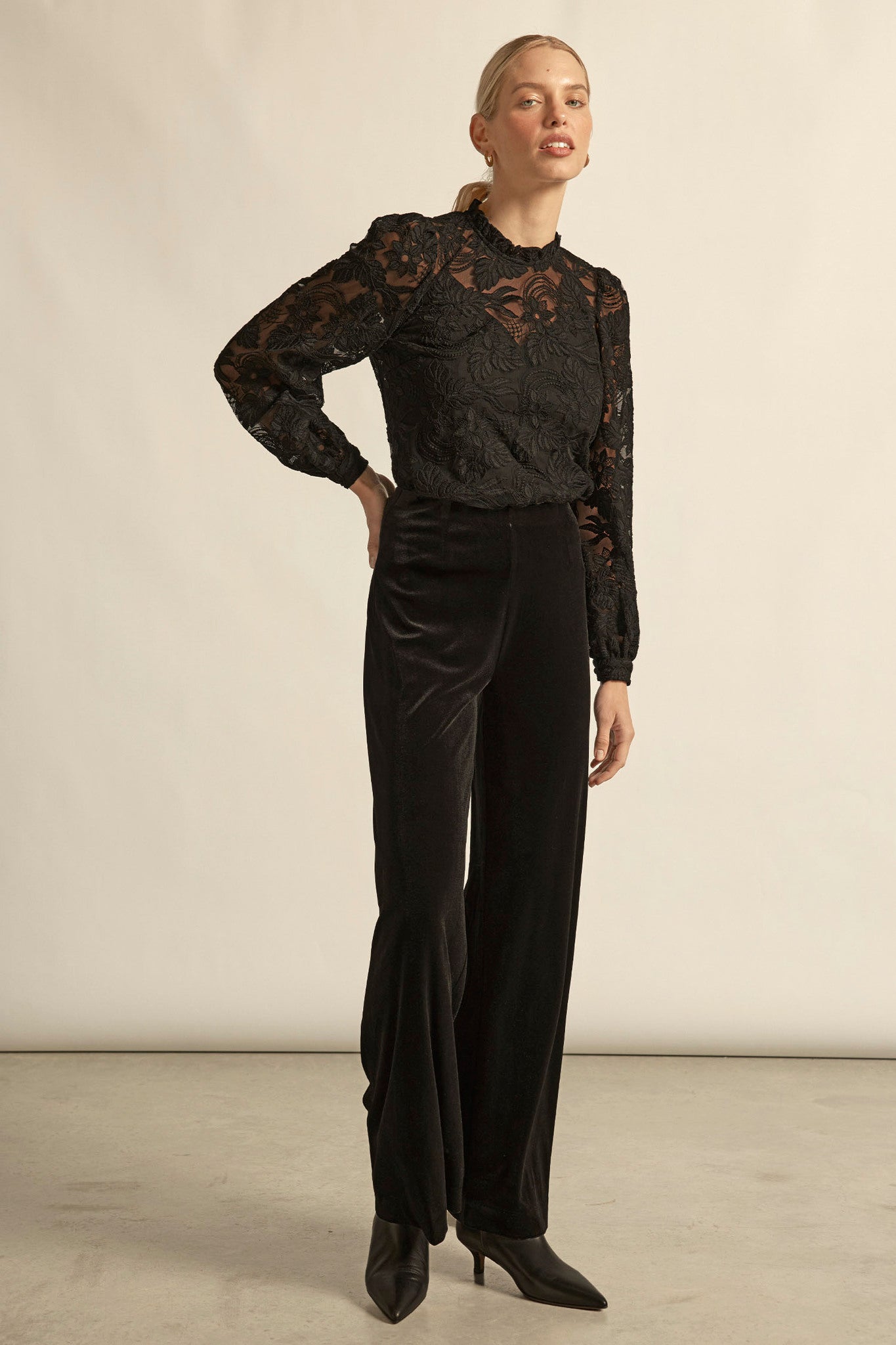 delicate and elevated. the glint top brings romantic detail into a refined, modern silhouette.