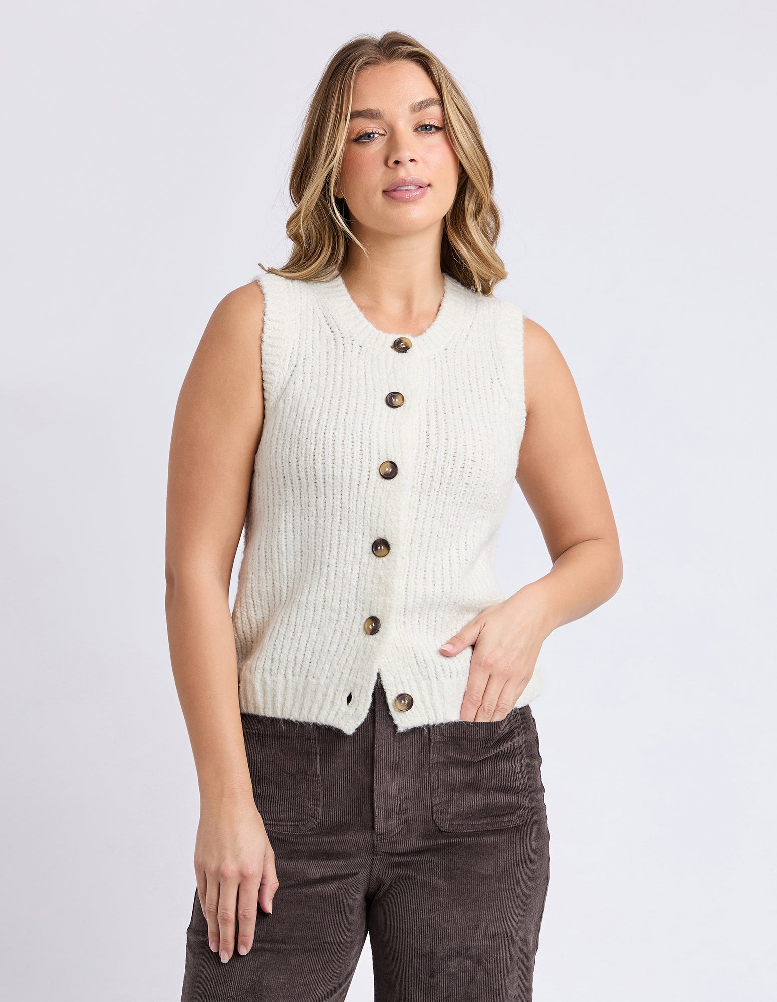 The Delta Knit is a sleek layering piece with a polished finish. Designed in a slim fit with a soft wool blend, this sleeveless style features a classic front button opening that can be worn buttoned up or layered open over a long sleeve or tee.