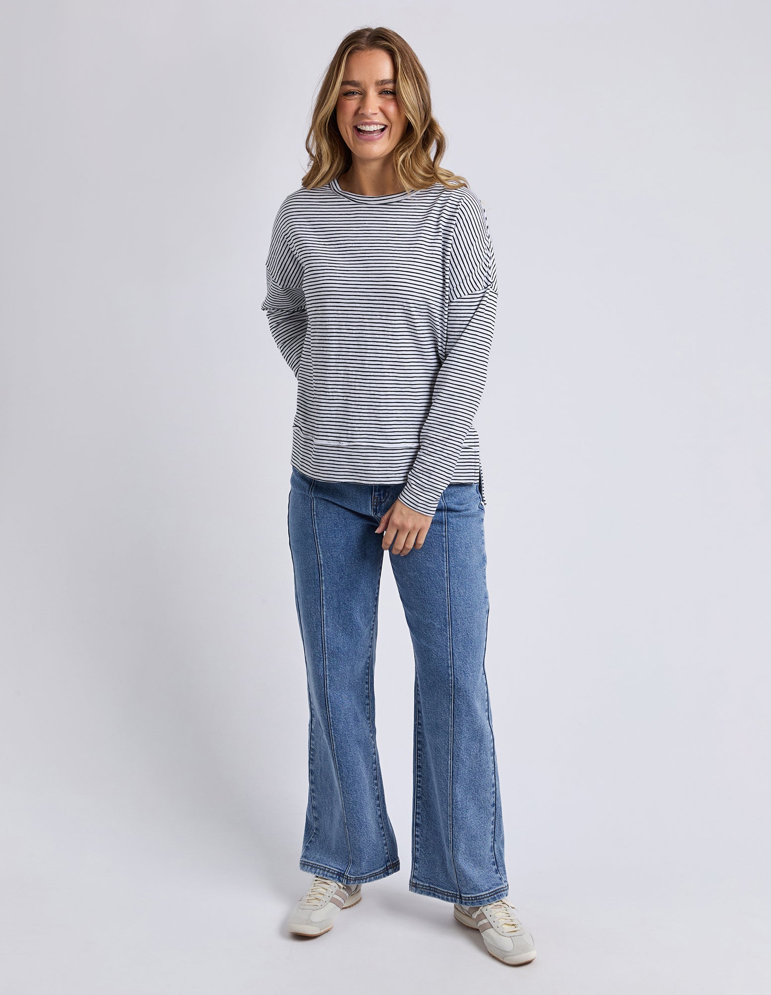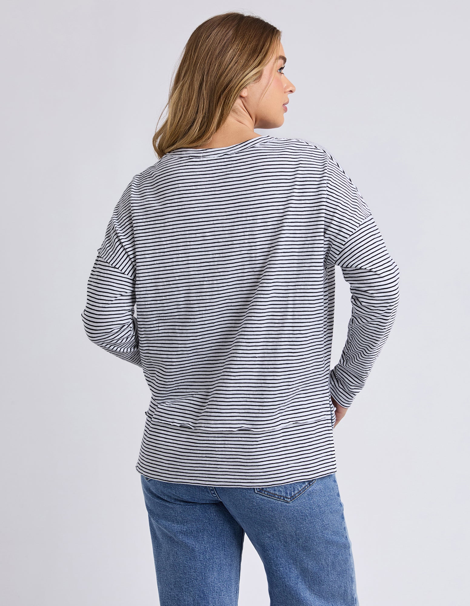 The Eddie Stripe Top is the ultimate throw-on piece for everyday wear. Designed in the signature Jayne throw on top shape, it features a classic yarn dyed stripe and an easy relaxed fit for all-day comfort. Made from 100% cotton, it's perfect for layering, weekend styling, and pairing with your favourite denim.